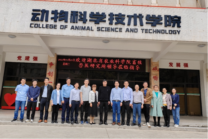 座谈会结束后,我院领导及教师与湖北省农业科学院畜牧兽医研究所的专家们在学院大楼前合影留念。