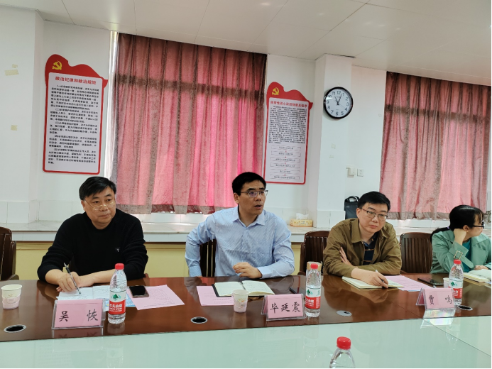 在座谈会上,首先邀请湖北省农业科学院畜牧兽医研究所吴恢书记介绍此次来访的目的:一是在科研方面进行深入交流,寻找合作机会,在科研上共同进步;二是希望我院输送高级人才到研究所工作以及双方联合培养博、硕研究生。随后,吴恢书记逐一介绍了随行来访的五位专家:副所长毕延震研究员和副所长温国元研究员,猪育种研究室副主任吴俊静研究员、动物营养研究室副主任陈芳副研究员和科研管理科副科长贾鸣。