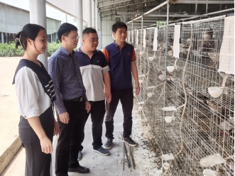 4月30日,教工二支部党员、广西肉鸽行业协会秘书长、党支部副书记韦天超副教授到广西贵港吉丰肉鸽养殖专业合作社调研并提供鸽病防控技术指导。