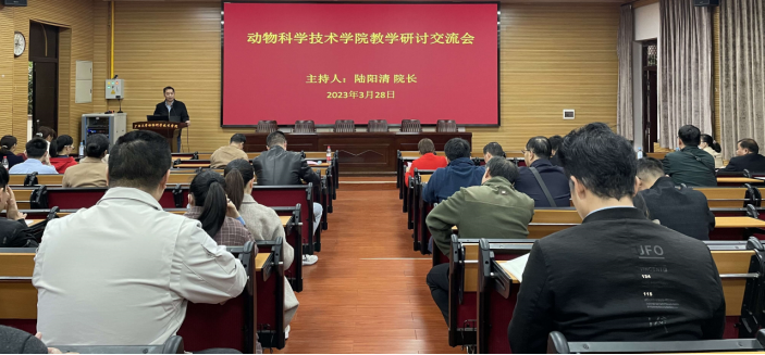 为英国上市公司365本科提升专任教师教学质量,更好迎接本科教学审核评估工作, 2023年3月28日下午3点,我院召开了教学研讨交流会。我们邀请了教务处副处长彭林欣、督导团郭亚芬老师到会指导,动科院党委书记顾慕娴、院长陆阳清、党委副书记沙健、副院长宁鹏飞以及动科院全体专任教师参加。会议由学院院长陆阳清主持。