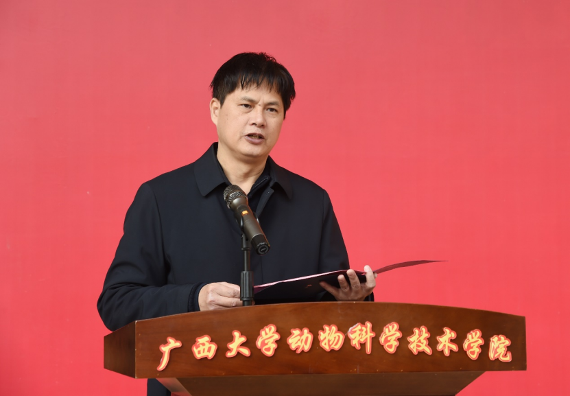 梁纪豪副厅长代表农业农村厅对广西畜禽繁育与疾病防控重点实验室、广西壮族自治区兽用生物制品工程研究中心的揭牌成立表示热烈祝贺。梁副厅长引用了习近平总书记在中央农村工作会议的讲话精神,指出“全面推进乡村振兴、加快建设农业强国,是党中央着眼全面建成社会主义现代化强国作出的战略部署。我们要加快建设农业强国,要紧盯世界农业科技前沿,大力提升我国农业科技水平,加快实现高水平农业科技自立自强,要以农业关键核心技术攻关为引领,以产业急需为导向,发挥新型举国体制优势,整合各级各类优势科研资源,强化企业科技创新主体地位,构建梯次分明、分工协作、适度竞争的农业科技创新体系。要打造国家农业科技战略力量,支持农业领域重大创新平台建设”。广西的生猪、家禽生产规模位于全国前列,饲料产量也连续3年位居全国第三。广西大学英国上市公司365拥有一流的人才培养体系,师资力量雄厚。广西畜禽繁育与疾病防控重点实验室和广西壮族自治区兽用生物制品工程研究中心的成立,必将在推动广西畜牧业快速、高质量发展中发挥更大作用。