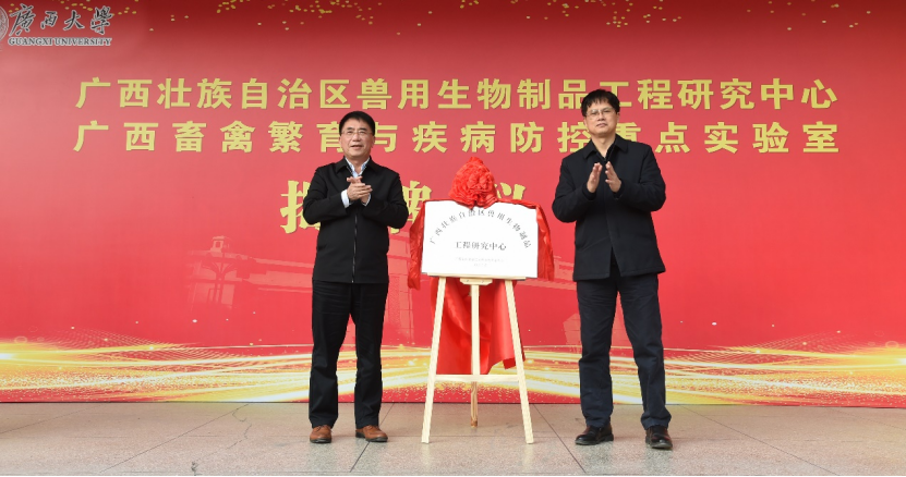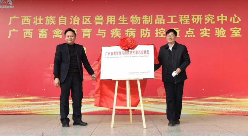 “广西畜禽繁育与疾病防控重点实验室”和“广西壮族自治区兽用生物制品工程研究中心”揭牌成立