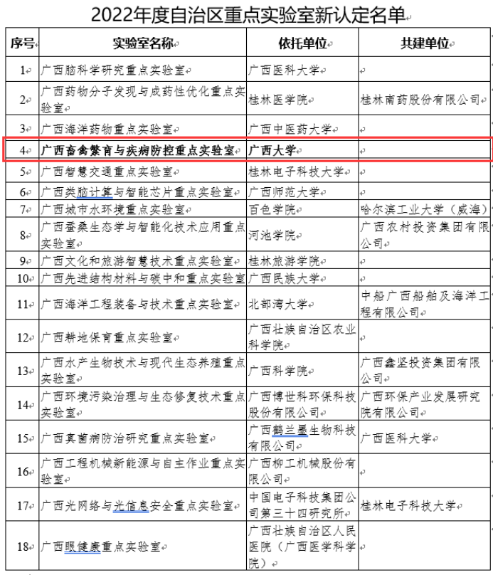 广西畜禽繁育与疾病防控重点实验室获批2022年度自治区重点实验室