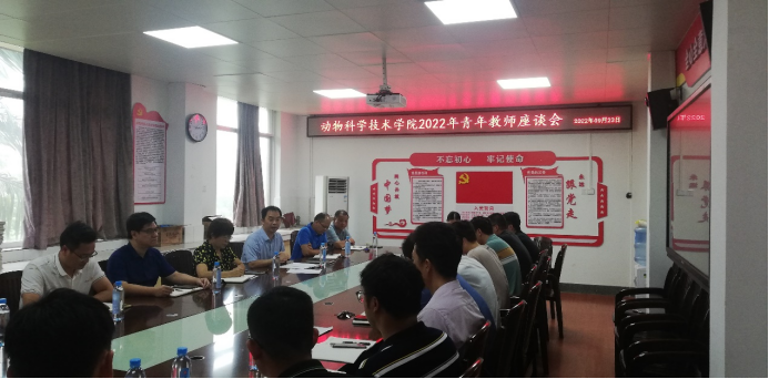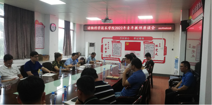2022年9月23日下午,在我院302会议室召开青年教师座谈会,会议由学院党委副书记沙建主持,学院党委书记顾慕娴、常务副院长陆阳清、副院长宁鹏飞、韦祖樟、院长助理兼动科系主任蒋钦杨、动医系主任陈樱及18位青年教师参加了本次会议。
