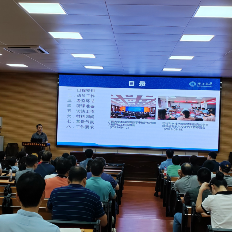 2023年9月19日下午,我院在学院318报告厅召开2023年秋季学期开学教职工大会暨本科教育教学审核评估专家入校评估工作动员会,会议由副院长宁鹏飞主持。