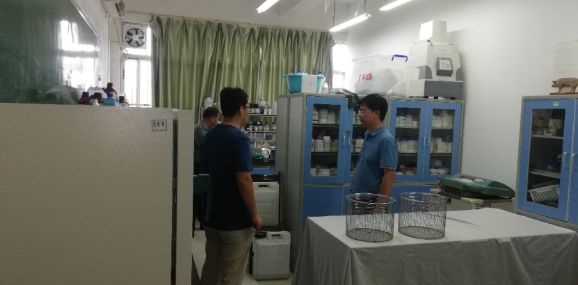 党委书记韦小强(右一)检查学院教学科研基地实验动物饲养房