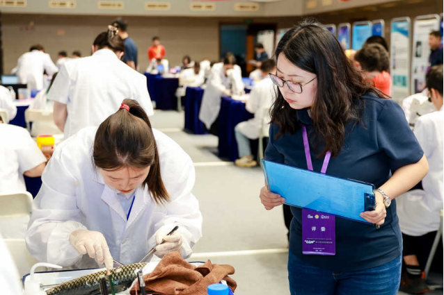 本次大赛结合涉农涉水学科特点,为引导参赛选手夯实理论基础,精进专业技能,总决赛赛程设置专业知识竞赛、专业技能竞赛及创新创业能力竞赛三大块。专业知识竞赛环节,选手从“水产动植物基础”“水产动物营养”“水产动植物增养殖”“水产动物育种与病害防控”以及“渔业资源与水域生态”五个方向展现扎实的学科理论学习能力;在专业技能竞赛环节,参赛选手从鱼体解剖及观察、草鱼血涂片制作、水产动物饲料原料辨识和配方设计、水产动物健康状况综合评价等方面展示娴熟的实操能力。