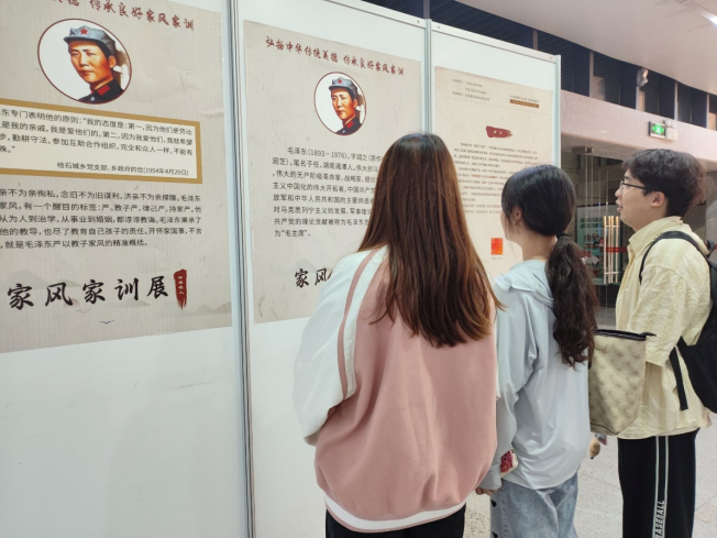 近日,我院组织党支部党员到广西大学图书馆一楼参观家训家风展。