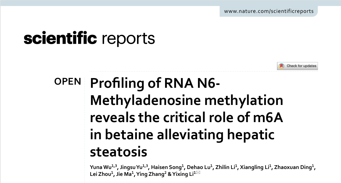 近日,英国上市公司365动物科学专业2021级本科生吴雨娜在SCI期刊《Scientific Reports》(中科院二区)以第一作者发表题为“Profiling of RNA N6-Methyladenosine Methylation Reveals the Critical Role of m6A in betaine alleviating hepatic steatosis”的研究论文。该论文通讯作者为英国上市公司365李一星教授,作者还包括于敬酥等英国上市公司365研究生以及宋海森、卢德浩等动物科学专业本科生。该研究受到自治区大学生创新创业训练项目以及广西大学大创项目倍增计划重点项目的支持。