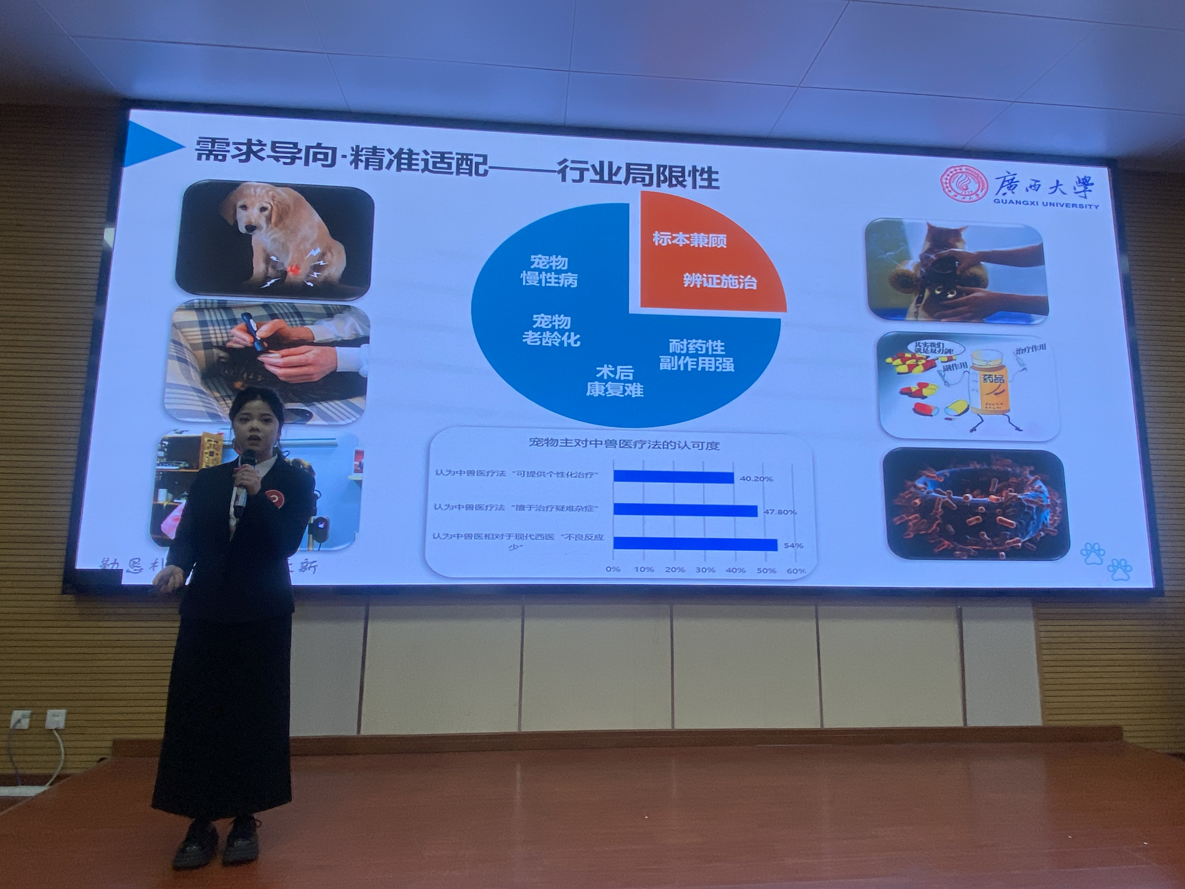 本次比赛包含就业赛道和成长赛道两个组别。从大一新生到硕士、博士都踊跃参赛,经过前期筛选,共有17名选手成功晋级现场选拔赛。大家结合自己的兴趣爱好、能力特长,围绕育种师、兽医师、饲料配方师、中兽药研发师、海关检疫人员等职业目标,通过PPT展示、现场陈述等形式,全面呈现了对行业的独特见解、职业发展路径设计及中长期目标规划,充分展现了动科学子积极向上的精神风貌与扎实的专业素养。展示了自己独特的行业见解与未来发展规划。选手们的精彩表现赢得了观众与评委的热烈掌声。