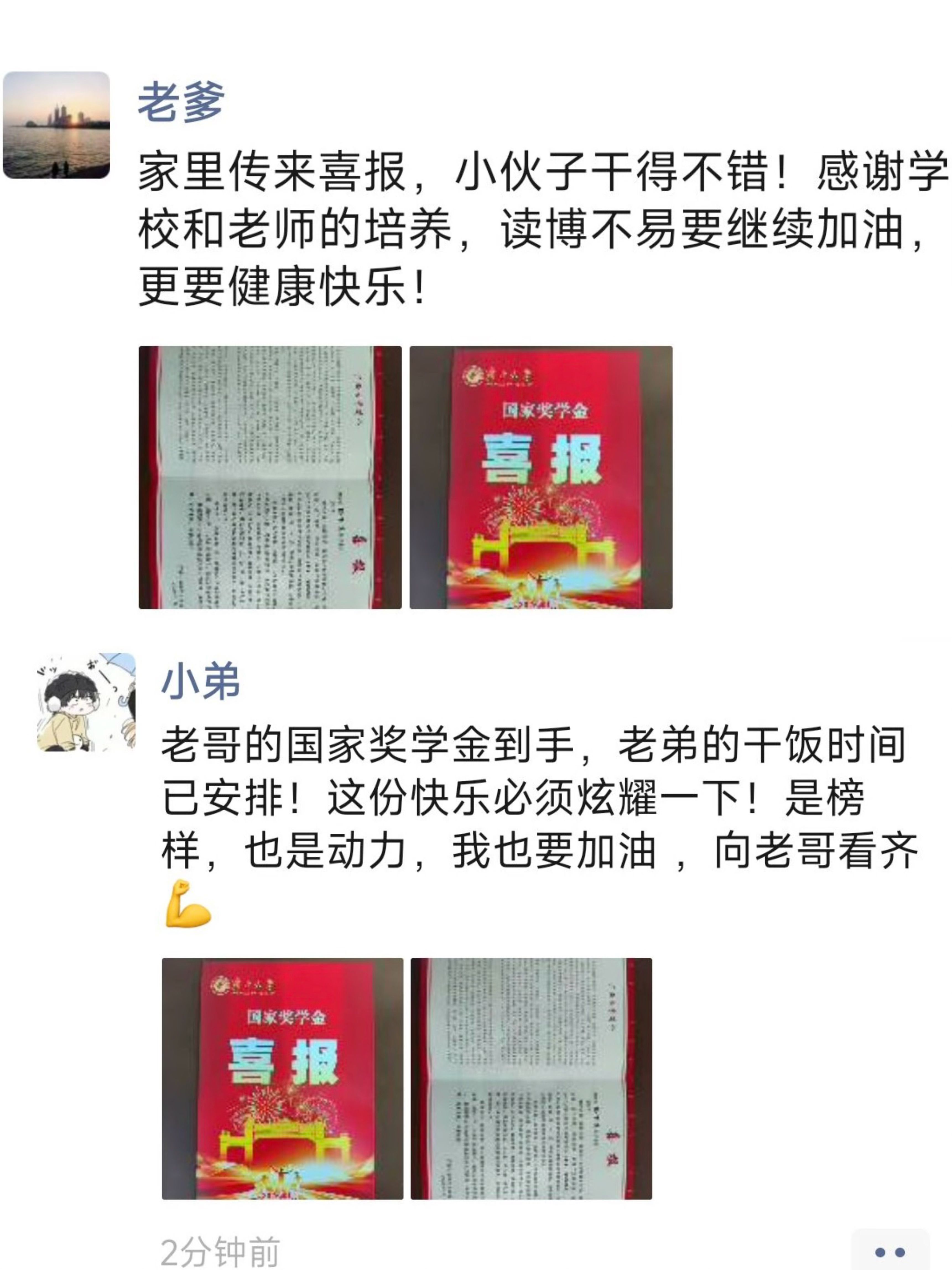 本科生国家励志奖学金获奖学生裴飞扬家长