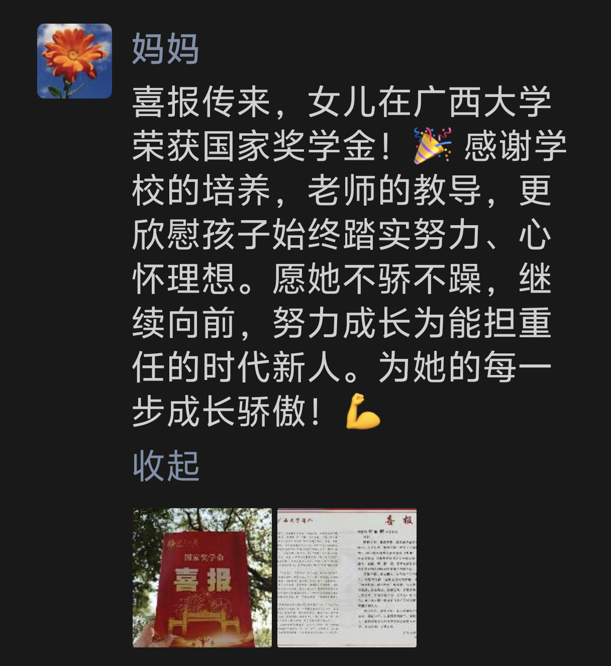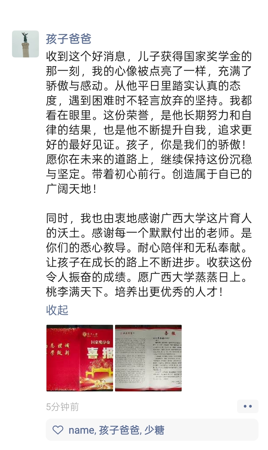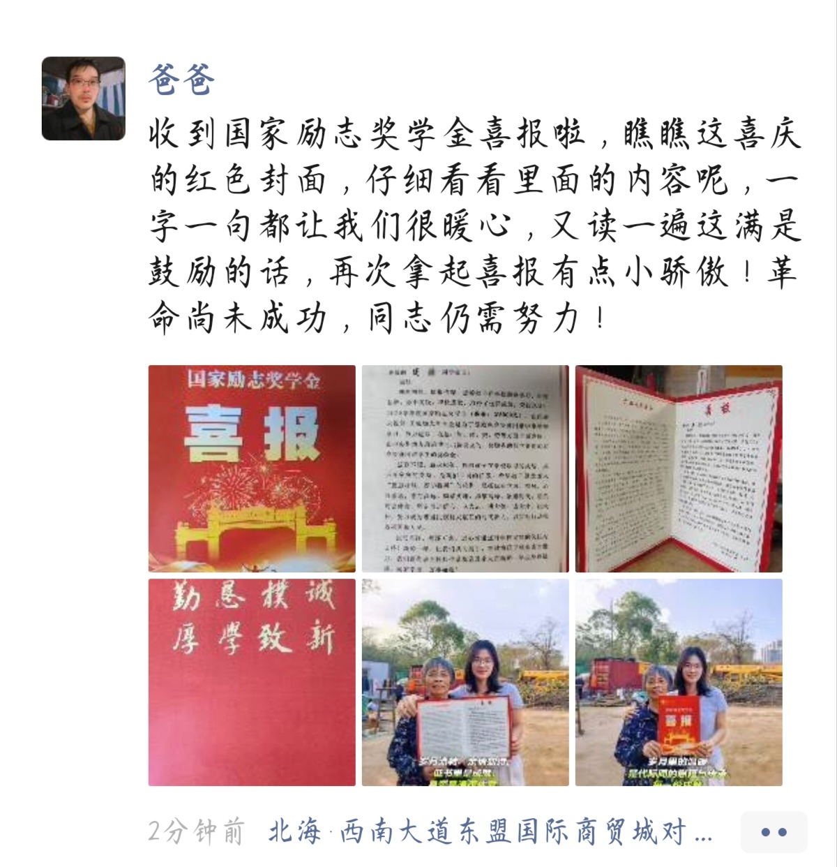 方寸喜报,映照出无数温馨画面:父母手捧喜报,嘴角扬起欣慰的笑意;家人围坐一处,笑语中满是对子女成长的骄傲。每一张照片,都定格了独属于这个家庭的幸福时刻。喜悦在指尖传递,感动于心中流淌。许多家长在社交平台分享这份荣光:“感谢学院的用心培养和老师的悉心教导,希望孩子继续脚踏实地、不负韶华。”朴实的言语,一句句祝福,汇成了对动科学子最真挚的肯定。