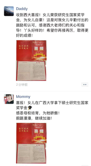 本科生国家励志奖学金获奖学生戴忻怡家长