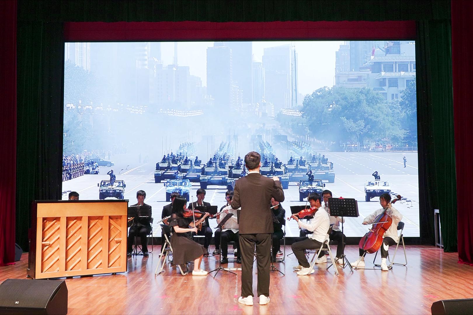 由广西大学艺术团管弦乐队带来的交响乐《钢铁洪流进行曲》,以威武雄壮的旋律,抒发了当代青年爱党爱国的真挚情感,既饱含对历史的致敬,又满怀对未来的期望。