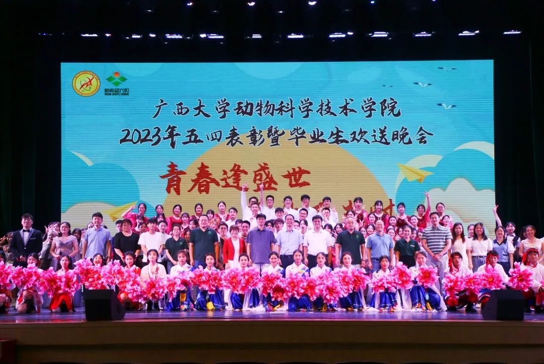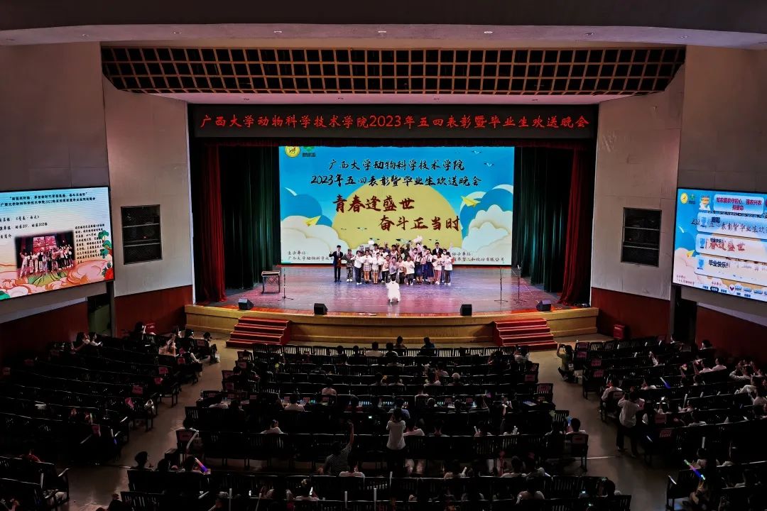 5月19日晚上,广西大学英国上市公司365“青春逢盛世,奋斗正当时”2023年五四表彰暨毕业生欢送晚会在大礼堂举行。广西大学原副校长、兽医学科带头人罗廷荣,英国上市公司365党委书记顾慕娴,院长陆阳清,党委副书记沙建,副院长韦祖樟,党委委员王晓丽,院长助理、动物科学系主任蒋钦杨,团委书记李丽娜,团委副书记刘诚,辅导员崔月明、彭可可、邹佳琪、韦春丽,新希望六和股份有限公司南宁新六农牧科技有限公司总经理唐运航,猪产业广西区域人力资源总监昝晓启,桂南战区人力资源经理廖敏贤,桂南战区人力资源副经理林榕、陈奕志,以及英国上市公司3651000余名师生欢聚一堂,共同参与此次活动。