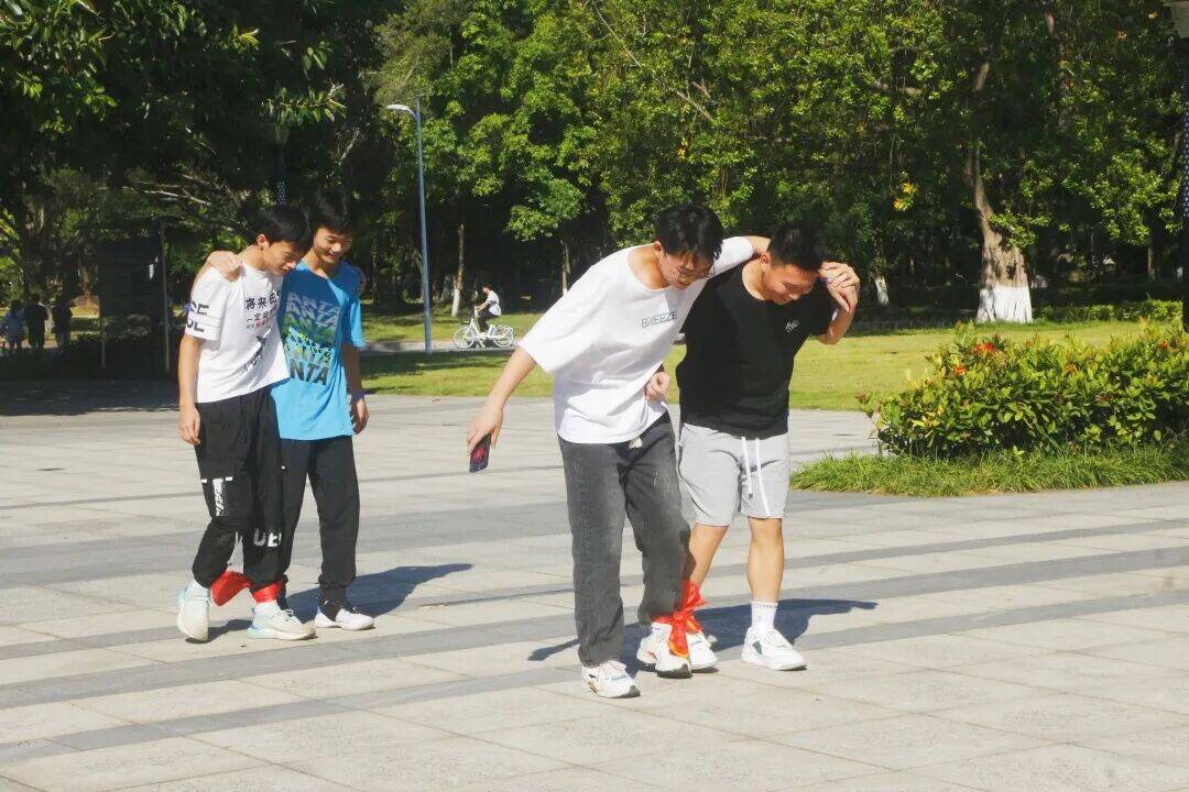 紧接着进行的是“双人同行”游戏,这个游戏需要两人一组,通过绑在一起的脚共同前进。成员们自由组队后,迅速投入到练习中。一开始,大家步伐不一致,走得磕磕绊绊,有的甚至刚迈出几步就差点摔倒,引得周围笑声不断。但大家并没有气馁,而是相互鼓励、相互扶持,不断调整步伐,寻找彼此之间的节奏。随着练习的深入,各小组逐渐找到了默契,步伐越来越整齐,速度也越来越快。在正式比赛时,各小组你追我赶,竞争十分激烈。有的小组配合默契,一路领先;有的小组虽然中途出现了一些小失误,但依然奋起直追,不放弃任何一个超越的机会。通过这个游戏,成员们学会了倾听他人的意见,相互信任,共同克服困难,进一步加深了彼此之间的友谊。