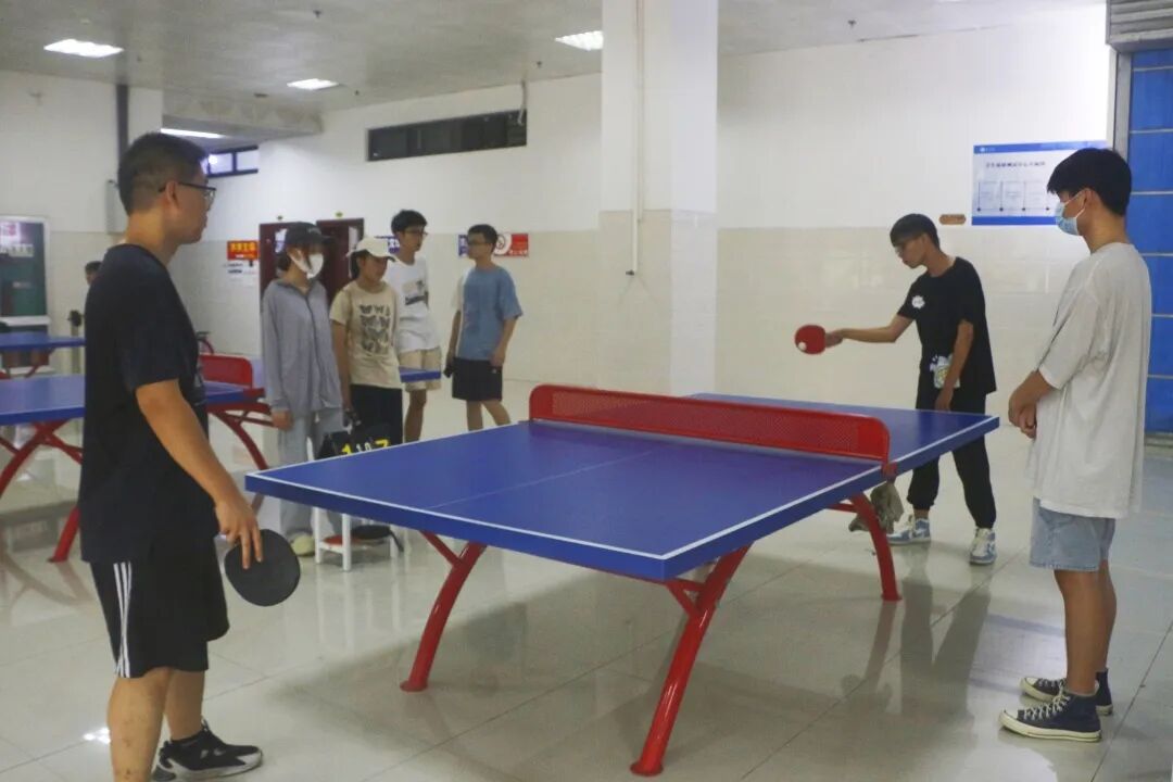 赛前,研究生会工作人员精心筹备,提前完成场地预约、器材采购与赛程规划,通过线上问卷收集参赛人员信息,根据报名情况设置男子单打、女子单打两个项目,并采用“单败淘汰制”确保赛事公平高效。活动当天,工作人员早早抵达现场布置赛场,张贴赛程表、划分比赛区域,为参赛选手准备好球拍、乒乓球及饮用水,营造出有序且温馨的比赛氛围。