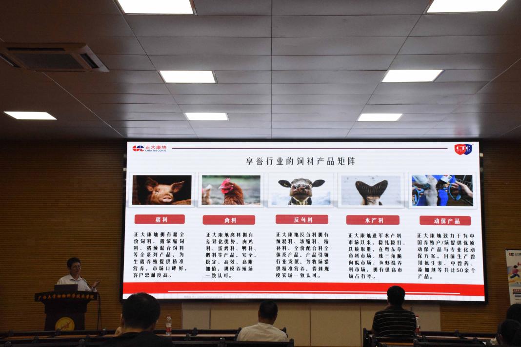 正大康地集团负责人从企业发展历程、核心业务布局及行业地位展开介绍,结合农牧产业高质量发展的时代背景,系统阐述了企业在养殖、饲料、食品加工等领域的核心优势与发展前景,让在场学子对企业实力及行业发展格局有了全面认知。