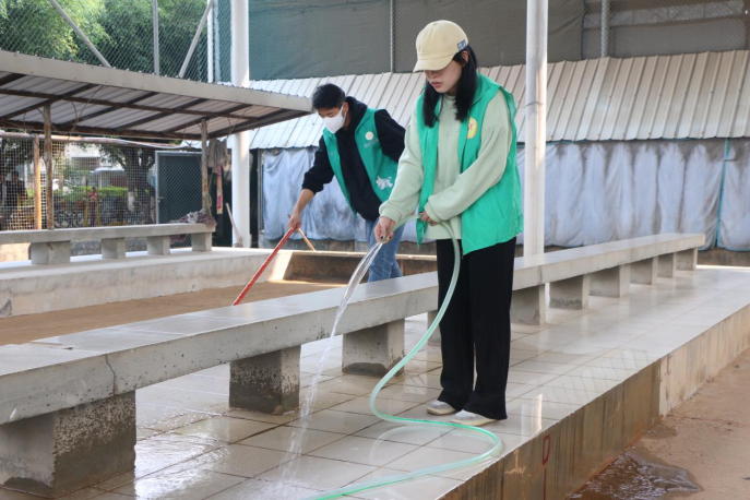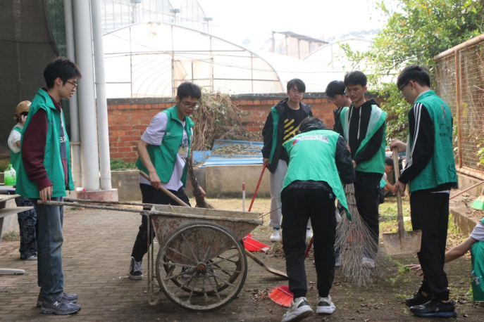 动医212班团支部和动医221班团支部分别组织团员来到东、西校园离退休教职工活动中心打扫球场,他们拿着抹布、扫帚、拖把、锄头、铲子等工具,分工协作,相互配合,对活动中心内的垃圾、杂草、树枝等进行清理。经过大家的辛勤劳动,活动中心焕然一新。