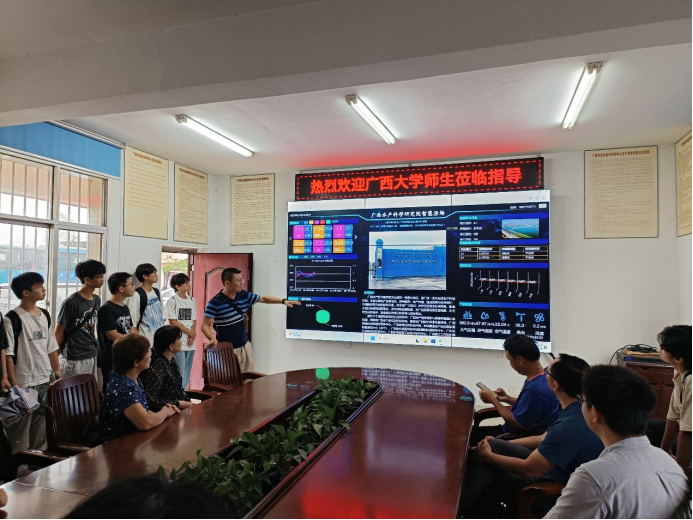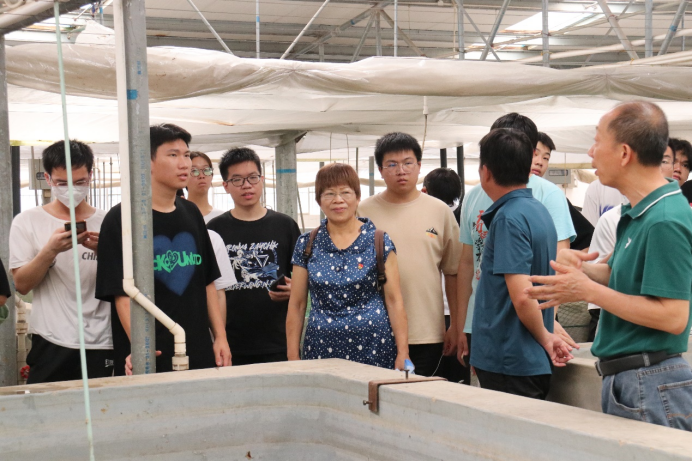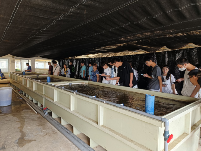 广西大学师生们参观广西水产科学研究院武鸣基地鳜鱼育苗车间
