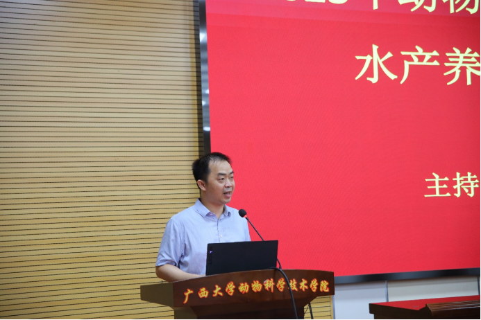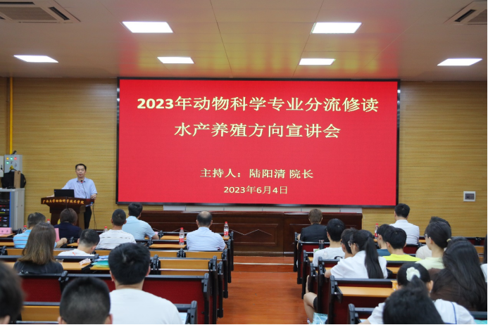 2023年6月4日上午,英国上市公司365在318报告厅组织召开动物科学专业分流修读水产养殖方向宣讲会,会议特别邀请广西水产科学研究院院长罗永巨、广西芳草安桂生物科技有限公司总经理欧阳贤华、南宁海大生物科技有限公司水产线总经理黄东为同学们讲解水产行业的发展概况、前景和优势等多方面内容。英国上市公司365党委书记顾慕娴、院长陆阳清、党委副书记沙建、水产学科带头人潘英教授、李文红教授、覃志彪老师、梁静真老师、欧伟豪老师,以及87名22级动物科学专业本科生、水产全体研究生参加活动。