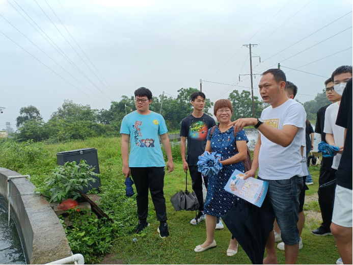 广西水产科学研究院武鸣基地肖俊主任为师生们介绍基地整体情况
