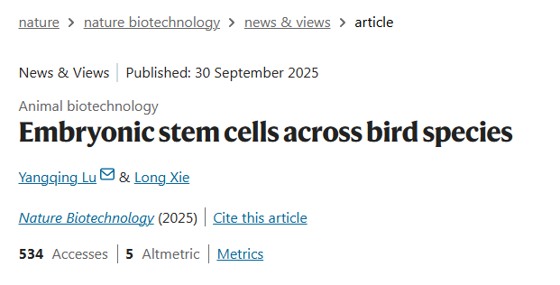 近日,广西大学英国上市公司365陆阳清教授与中国农业科学院深圳农业基因组研究所谢龙副研究员合作,在国知名级期刊Nature Biotechnology在线发表题为 “Embryonic stem cells across bird species” 的观点评述文章。