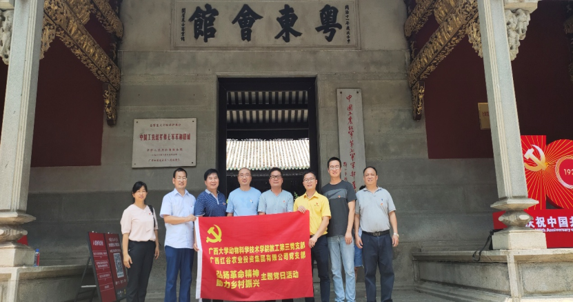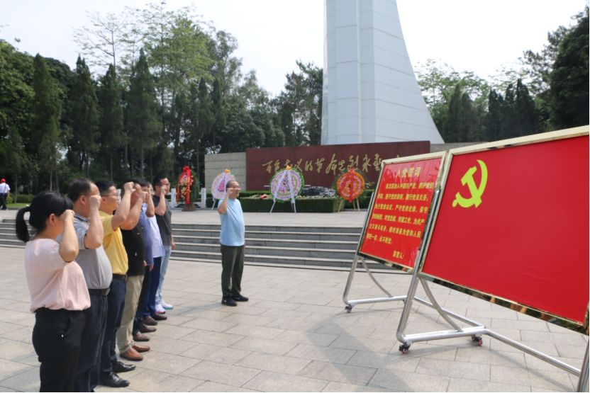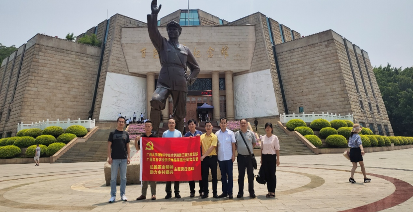 2021年5月21日,为庆祝中国共产党建党100周年,弘扬革命精神,助力乡村振兴,广西大学英国上市公司365教工第三支部开展学习百色起义革命史的主题党日活动。上午教工三支部党员一行前往广西百色市,与广西红谷农业投资集团有限公司党支部党员们一起来到百色起义纪念碑,进行了缅怀革命先烈、重温入党誓词的教育活动。