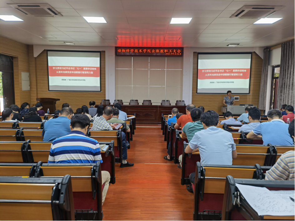 学院党委书记顾慕娴带领全院教职工进一步学习习近平总书记“七一”重要讲话精神。顾书记在会上说到我们要深刻领会习近平总书记“七一”重要讲话精神的重大意义、深刻把握中国共产党伟大的建党精神内涵、深刻理解实现中华民族伟大复兴的根本要求、深刻认识中国共产党百年光辉成就,从百年光辉党史中汲取前行智慧和力量。