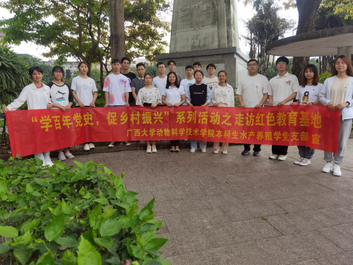 为庆祝中国共产党成立100周年,深入开展党史学习教育,4月14日下午,英国上市公司365本科生水产养殖学党支部组织党支部全体党员和入党积极分子,到广西大学校史馆和爱国民主运动纪念碑集中开展主题党日活动。