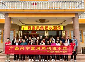 广西兴宁富凤鸡科技小院以广西富凤农牧集团有限公司作为依托单位,与广西科协、广西大学英国上市公司365、广西农业农村厅、南宁市科协、兴宁区科协等科研院所结成共建单位,于2021年5月25日批复同意设立,并于6月23日在广西富凤农牧集团正式成立并举行隆重的揭牌仪式。主要任务是通过专家团队的进驻和引进高校研究生扎根生产一线,开展广泛的课题研究,有效解决生产实际问题,促进人才培养,助推富凤鸡产业富民增收和乡村振兴战略实施。