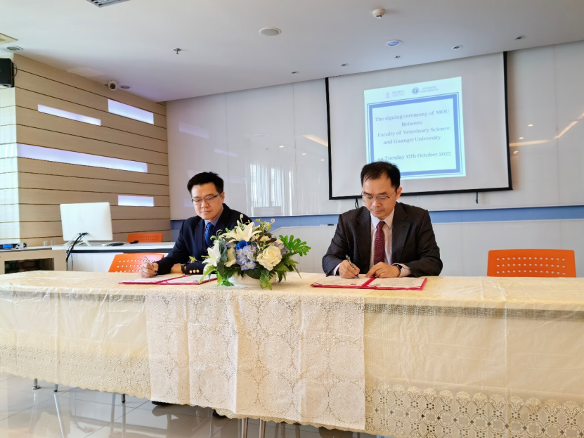 2023年10月17日,英国上市公司365院长院陆阳清教授与王晓晔副教授到泰国朱拉隆功大学兽医学院进行访问交流。